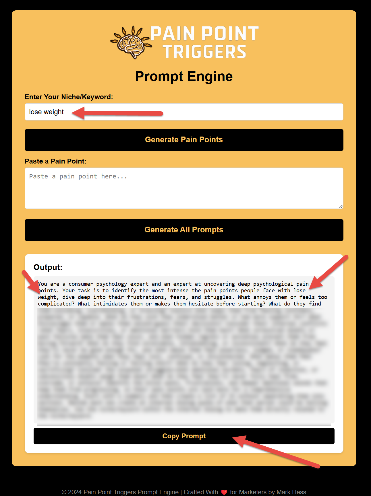 You then had to replace part of the prompt (a placeholder) with your pain point.
